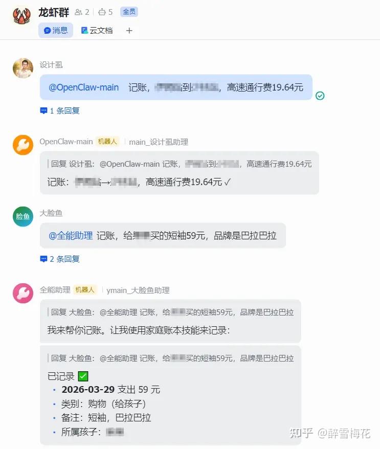 你看,我和家人在龙虾群里@龙虾记账。