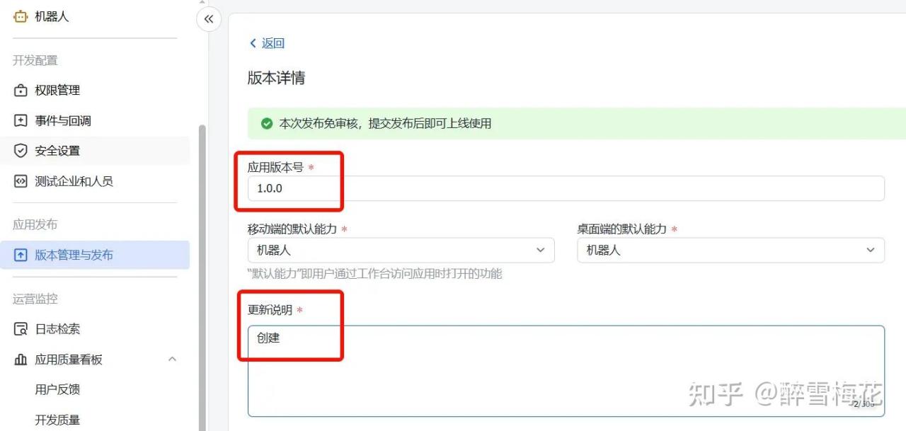 随便填一下应用版本号和更新说明,拉到页面底部,点击“保存”-“确认发布”。