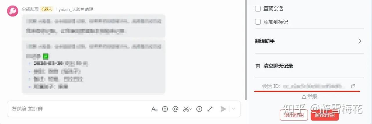 在群设置中,拉到最下方,复制会话 ID。