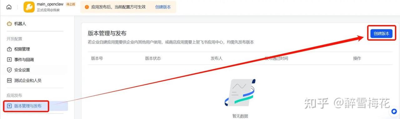 在左栏“版本管理与发布”中,点击“创建版本”。