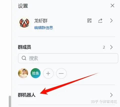 哦对了,如果你要把你的龙虾拉入了群聊,我们在飞书群里找到 群设置,点击“群机器人”,把刚才创建的机器人添加进去就可以了。