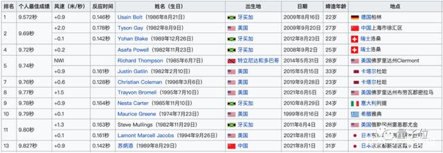 而这些纪录的保持者,除了Justin Gatlin在打破纪录时是33岁以外,其他人均为30岁以下。