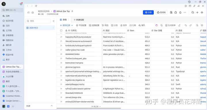 本周的热门 GitHub 仓库直达: https://my.feishu.cn/base/FB5wbrAOMaQoKqsQeuPcoOQXnx1?from=from_copylink