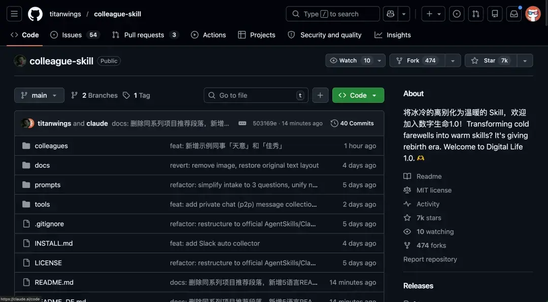 五天时间,7K 多 Star,还在疯涨。项目名叫 colleague-skill,翻译过来就是同事 SKill。