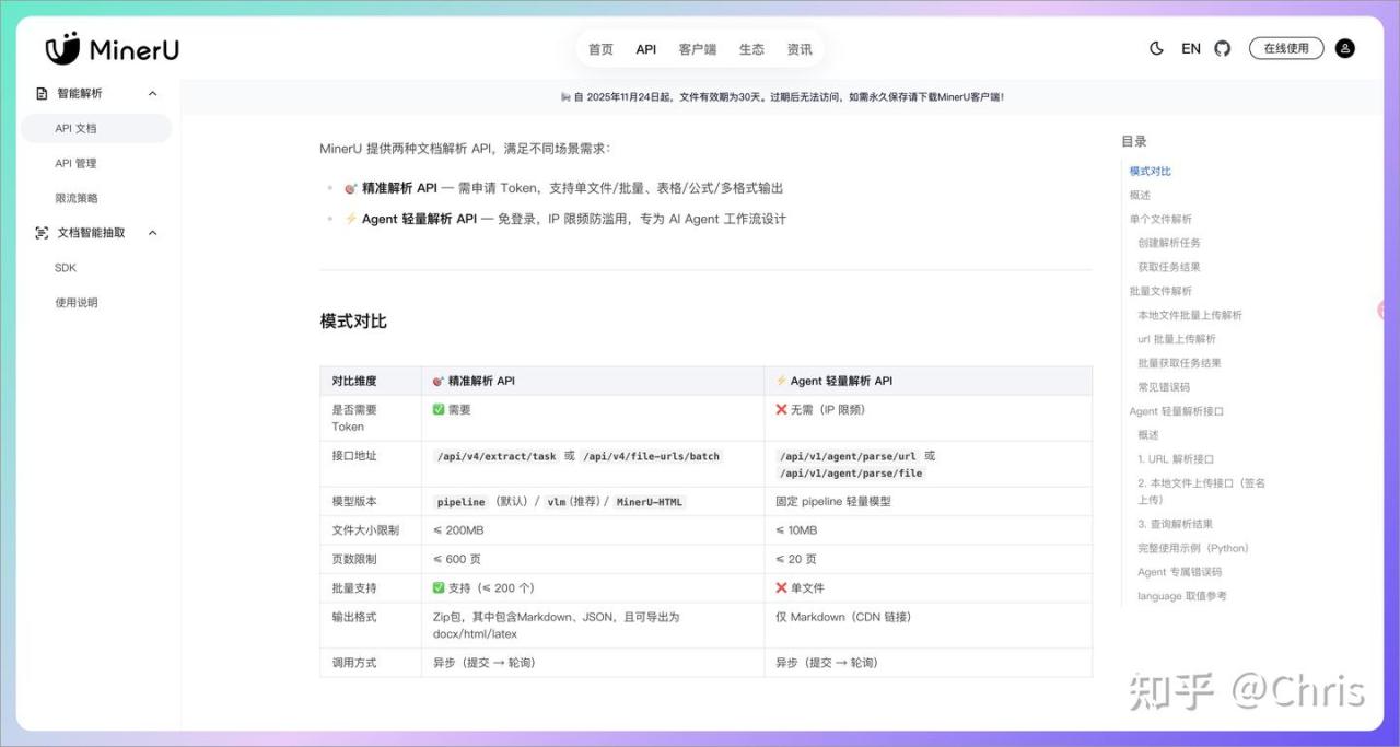 MinerU 提供两种文档解析 API,满足不同场景需求: