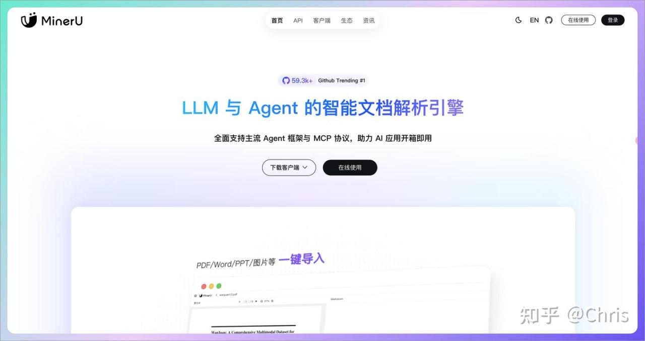 MinerU 是上海人工智能实验室(Shanghai AI Lab)开源的一款文档解析引擎,专注于把复杂文档变成AI能直接用的干净数据,比如 Markdown。