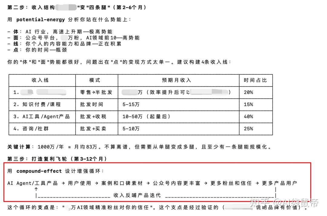 不是说这个方案一定能让我赚到1000万。而是我感受到,书里的知识真的被”用”起来了。如果继续,我还能跟它讨论更多落地的细节。