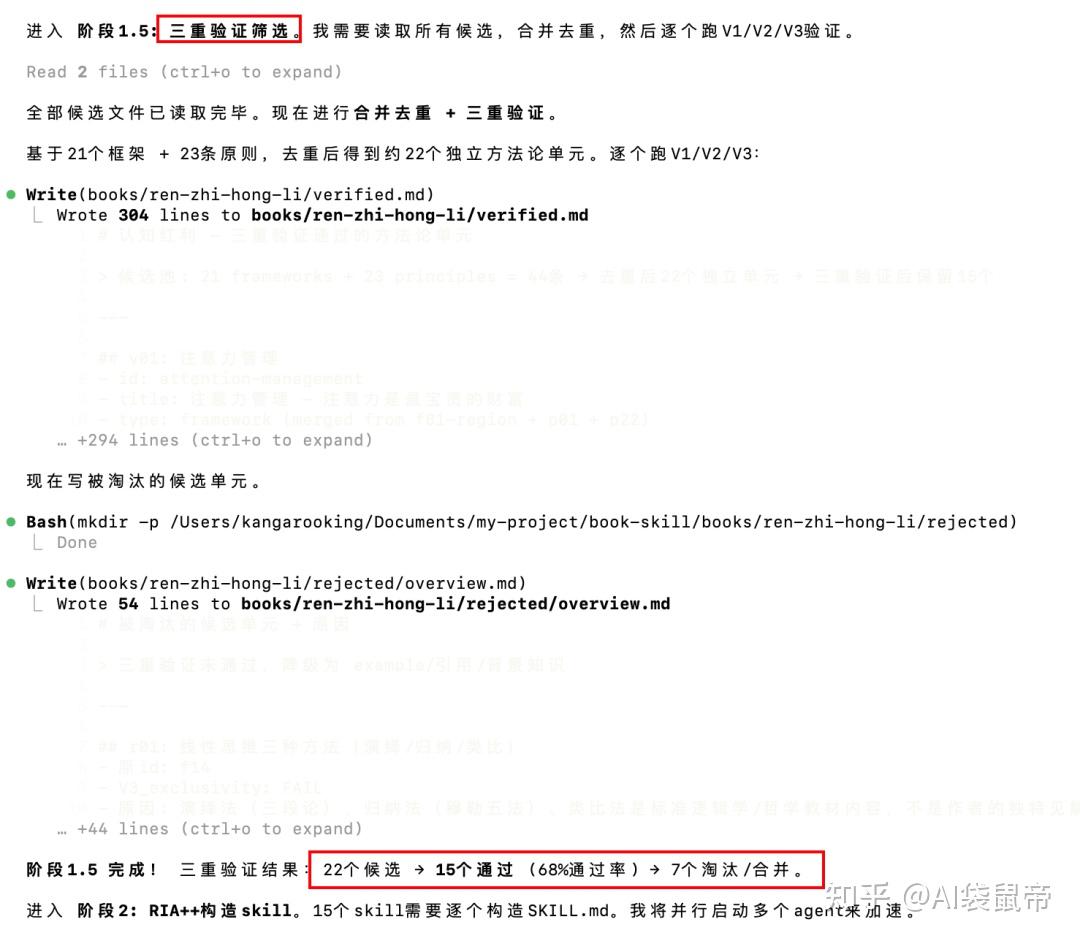 仓颉.Skill有三重验证:跨域验证(这个方法论在书里至少两个独立立场出现过吗?)、预测力测试(能用它推导出书里没直接讨论的问题吗?)、独特性检验(是不是任何人都能说出来的常识?)。通不过的直接淘汰。